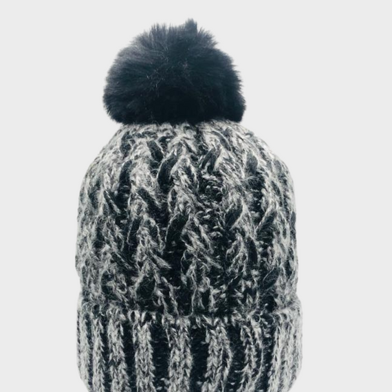 Gorro con Pompón de Piel Jaspeado: Estilo y Sofisticación Invernal ❄️🎩