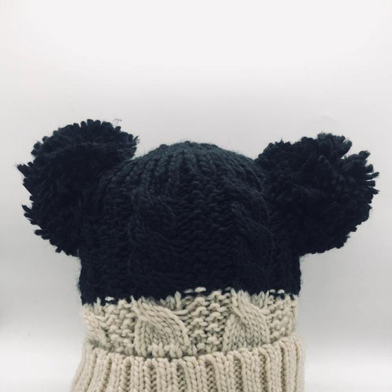 Gorro de Lana Bicolor con Pompones: ¡Estilo Moderno y Divertido para tu Invierno! 🤩❄️