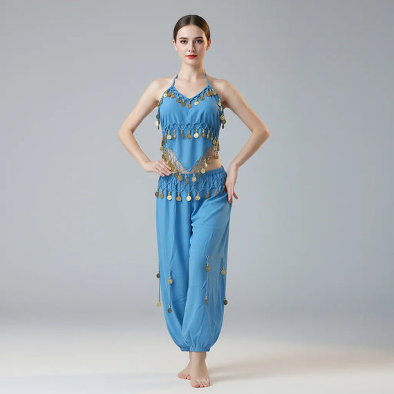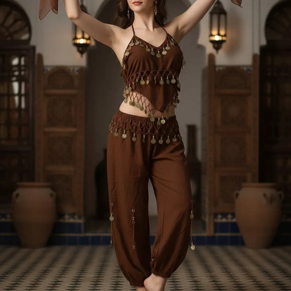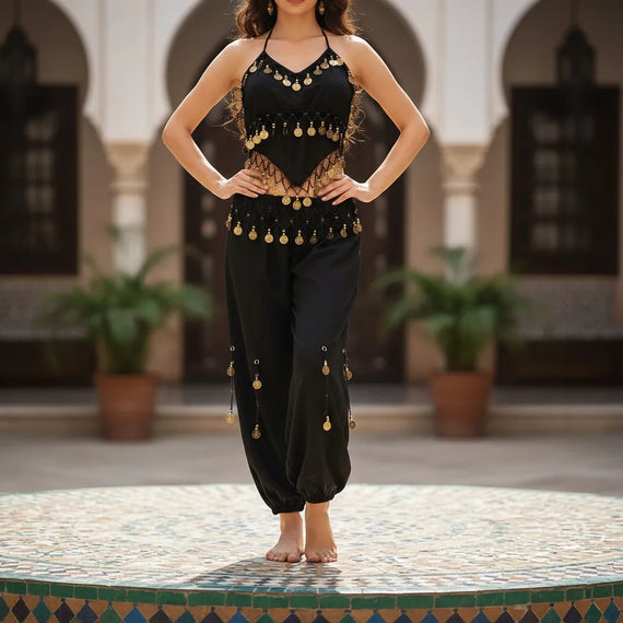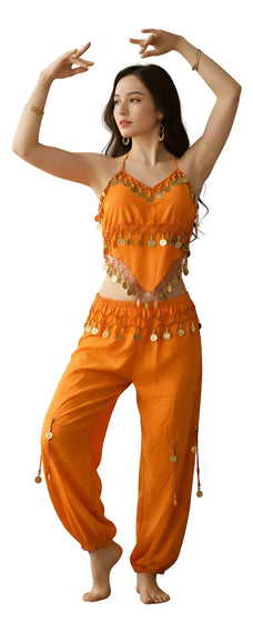 Traje De Danza Arabe- Con Monedas- Peto Y Pantalon